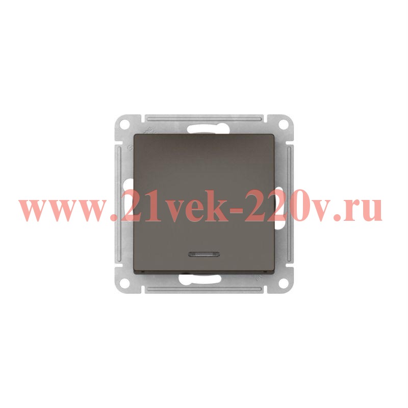 Встраиваемый 1-клавишный выключатель с индикацией АтласДизайн с пружинными клеммами, цвет мокко ATN000613S