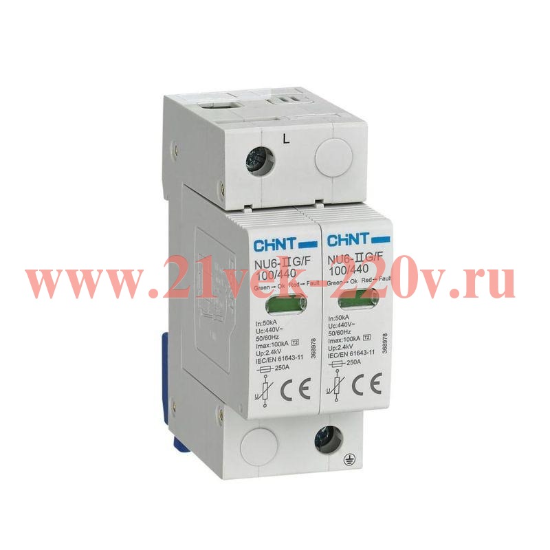 Ограничитель импульсных перенапряжений NU6-IIG 2п In=25кА Uc=440В Im=65кА (R) CHINT