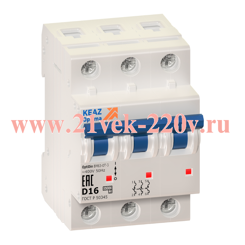 Ограничитель тока 3п D 16А OptiDin BM63-OT УХЛ3 КЭАЗ