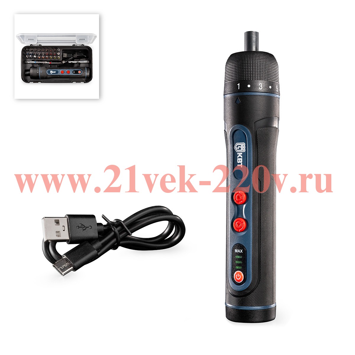 Комплектация | отвертка аккумуляторная SD-4-5; адаптер для бит HEX 1/4” и HEX 4 мм; сменные биты (27 шт.):- биты HEX 1/4” 25 мм: PH1, PH2, SL3, SL4, SL5, H3, H4, H5, T10, T15, T20, S0, S1, S2, U6.0, Y2, ТА2.3; - биты HEX 1/4” 65 мм: SL5, PH2; - биты HEX 4 мм 28 мм: SL1.5, SL2.0, PH000, PH00, PH0, ТS1.2, TS0.8, H2.0 ; бита-сверло HEX 1/4” 25 мм 2 мм; USB Type-C кабель |