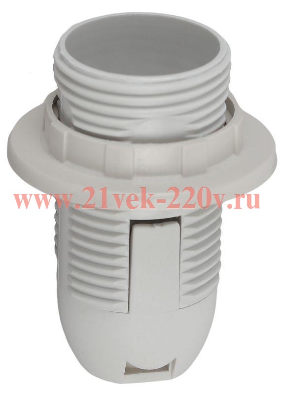 Патрон с кольцом изготавливается из термостойкого пластика, материал химически устойчивый к агрессивным средам, обладает высокой прочностью и теплостойкостью; не обладает способностью выдерживать высокие температуры нагрева, поэтому его чаще всего используют для ламп накаливания мощностью не более 60 Вт.