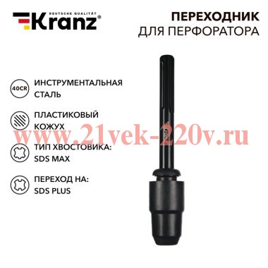 Переходник для перфоратора пластик. кожух SDS MAX на SDS PLUS Kranz KR-91-0231