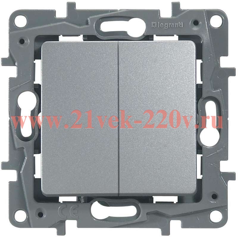 Двухклавишный переключатель (672412) Легранд (Legrand) серии Этика Плюс (Etika Plus). Цвет - алюминий.