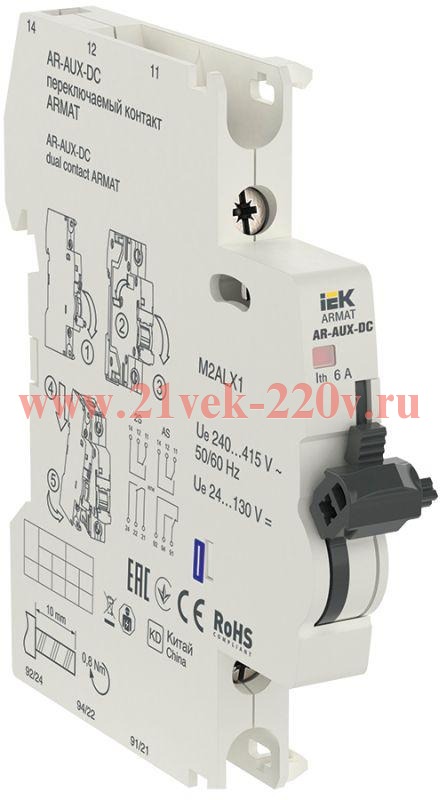 Переключаемый контакт ARMAT AUX-DC служит для получения информации о состоянии автоматических выключателей ARMAT серий M06N и M10N в системах автоматизации технологических процессов или защиты конкретных объектов.