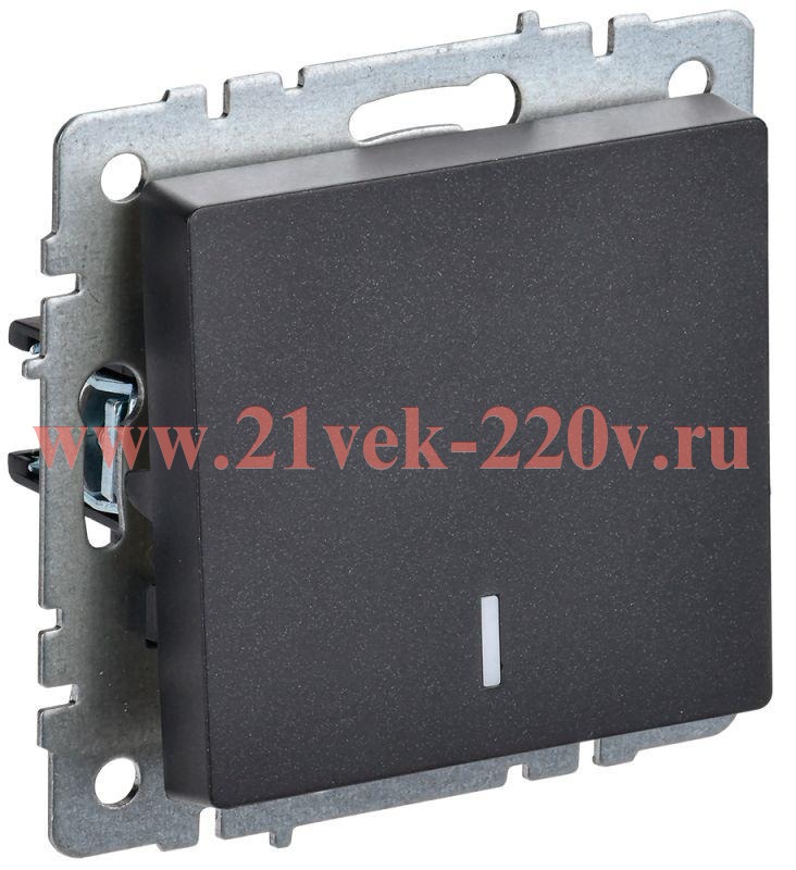 Механизм одноклавишного проходного выключателя с подсветкой, для скрытого монтажа IEK BRITE с клавишей черного цвета. BR-V12-1-10-K02