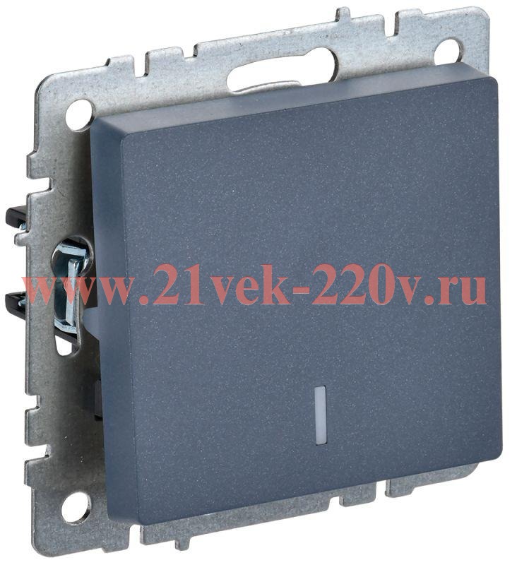 Механизм одноклавишного проходного выключателя с подсветкой, для скрытого монтажа IEK BRITE с клавишей цвета маренго. BR-V12-1-10-K35