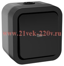 Проходной выключатель одноклавишный влагозащищенный с подсветкой для открытой установки, цвет графит, Торс IEK