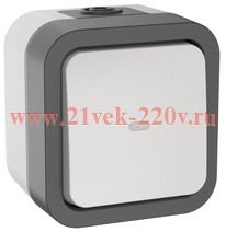 Проходной выключатель одноклавишный влагозащищенный с подсветкой для открытой установки, белый цвет, Торс IEK