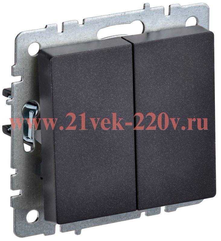 Механизм двухклавишного проходного выключателя для скрытого монтажа IEK BRITE с клавишами черного цвета. BR-V22-0-10-K02