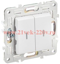 Механизм 2-клавишного проходного выключателя с подсветкой для скрытого монтажа белого цвета
