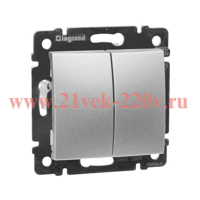 Двухклавишный переключатель на два направления (проходной выключатель с двух мест) Legrand серии Valena 10А 250В. Цвет - алюминий.