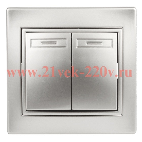 Переключатель Intro Plano 1-107-03 двухклавишный, 10А-250В, IP20, СУ, алюминий