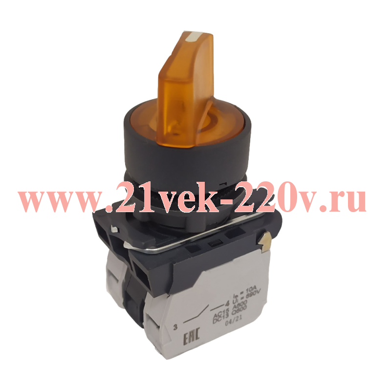 Переключатель КПЕ1110РЛ 220В желт. 1но+0нз ручка фикс 2поз индикатор IP40 КЭАЗ