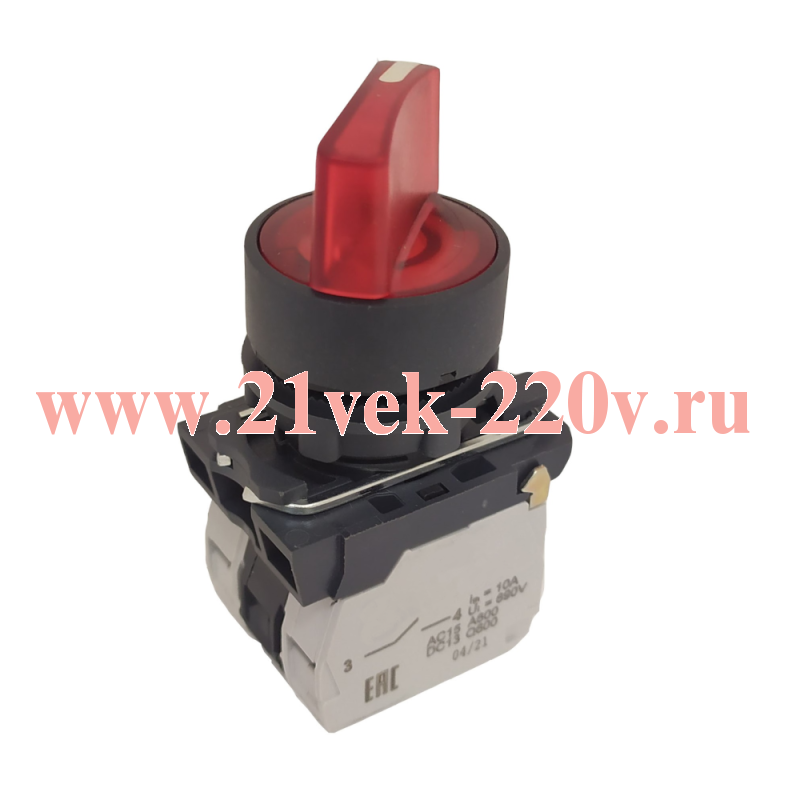 Переключатель КПЕ1110РЛ 24В красн. 1но+0нз ручка фикс 2поз индикатор IP40 КЭАЗ
