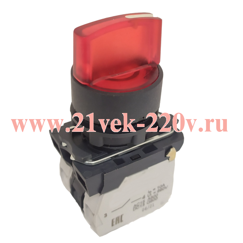 Переключатель КПЕ2120РЛ 24В красн. 2но+0нз ручка фикс 3поз индикатор IP40 КЭАЗ