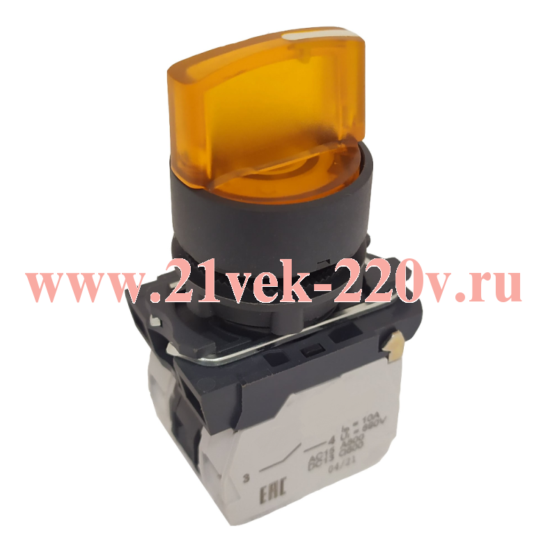 Переключатель КПЕ2120РЛ 24В желт. 2но+0нз ручка фикс 3поз индикатор IP40 КЭАЗ