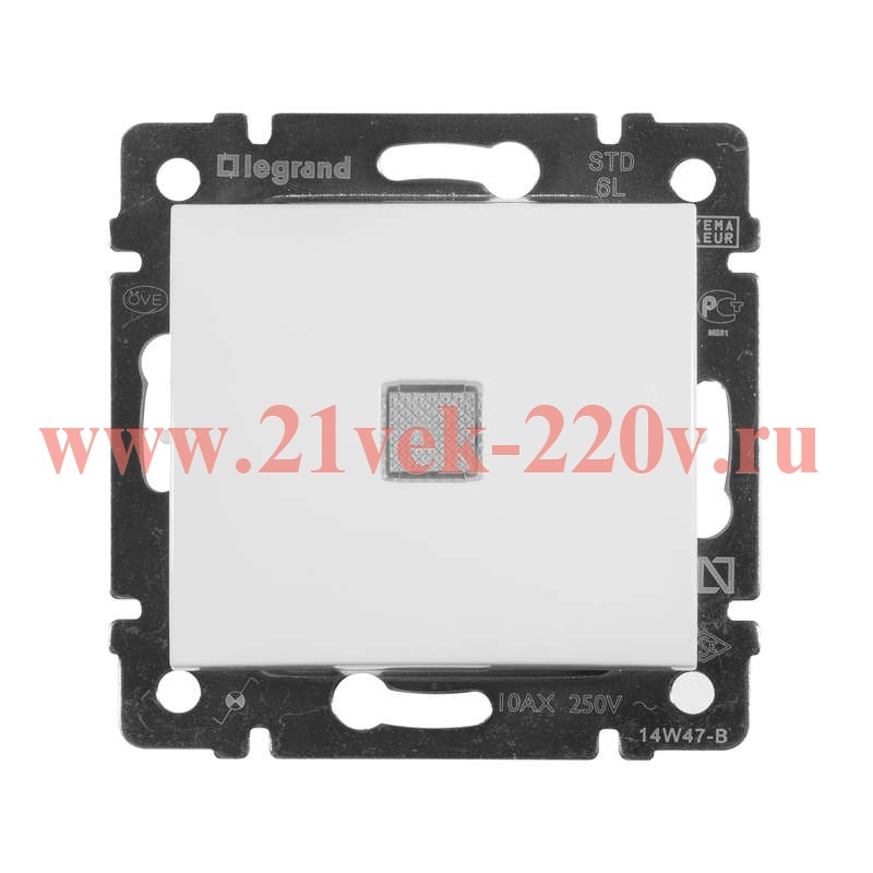 Одноклавишный переключатель на два направления (проходной выключатель с двух мест), с подсветкой Legrand серии Valena. Цвет - белый