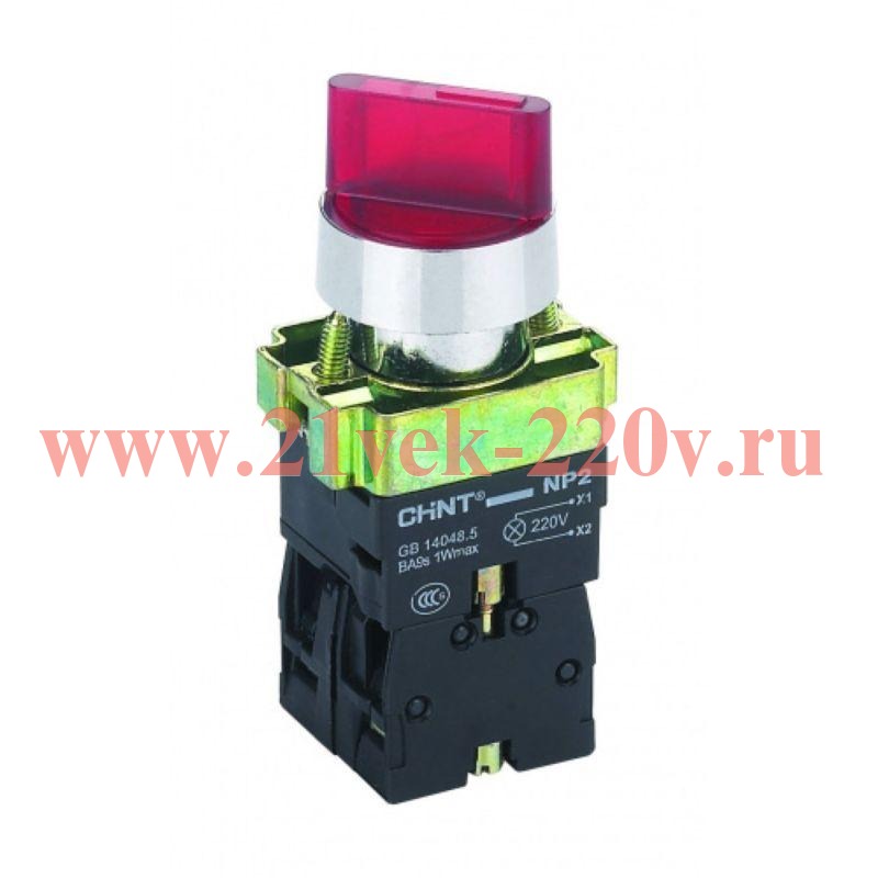 Переключатель NP2-BK12461 2 полож. с фиксацией 1НО красн. AC/DC 220В (LED) IP40 CHINT