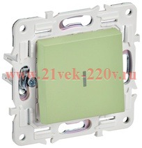 Механизм 1-клавишного проходного выключателя с подсветкой для скрытого монтажа мятного цвета
