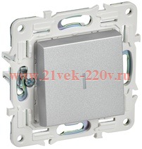 Механизм 1-клавишного проходного выключателя с подсветкой для скрытого монтажа цвета серебро