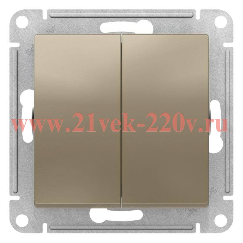 Электрический 2-клавишный промежуточный выключатель света, цвета шампань для скрытой установки, Атлас Дизайн ATN000573