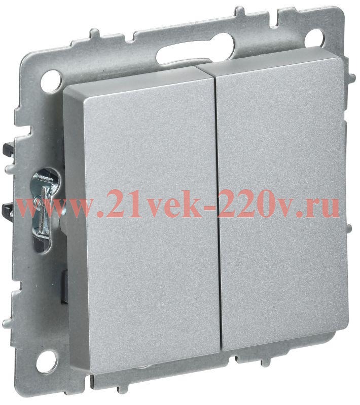 Механизм двухклавишного промежуточного выключателя для скрытого монтажа ИЭК Брайт с клавишами цвета алюминий. BR-V23-0-10-K47