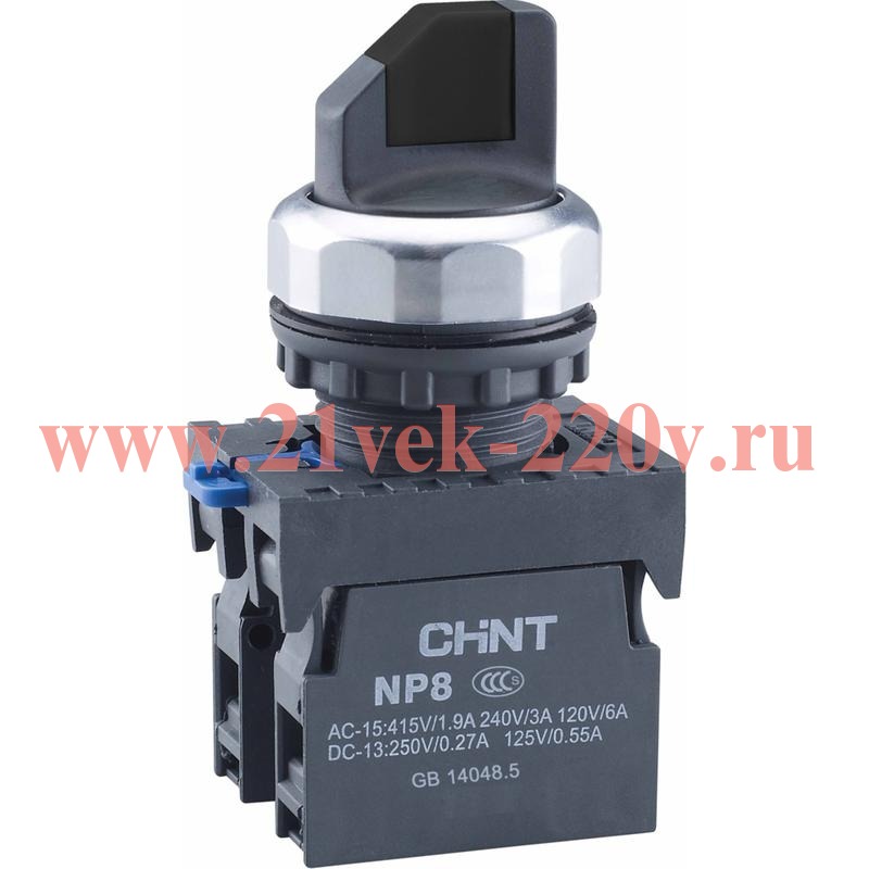Переключатель с фиксацией NP8-20X/312 без подсветки 2НО чёрный IP65 (R) CHINT