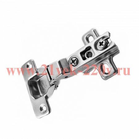 - Особенности: представляет собой разборный механизм. Ответная планка устанавливается во внутреннюю часть корпусной мебели. Верхняя часть тела петли устанавливается на дверь, после чего вводится подвинт в ответной планкеи фиксируется в нужном положении. При использовании накладной петли дверца полностью перекрывает боковину, к которой прикреплена. Положение петли относительно планки можно отрегулировать.