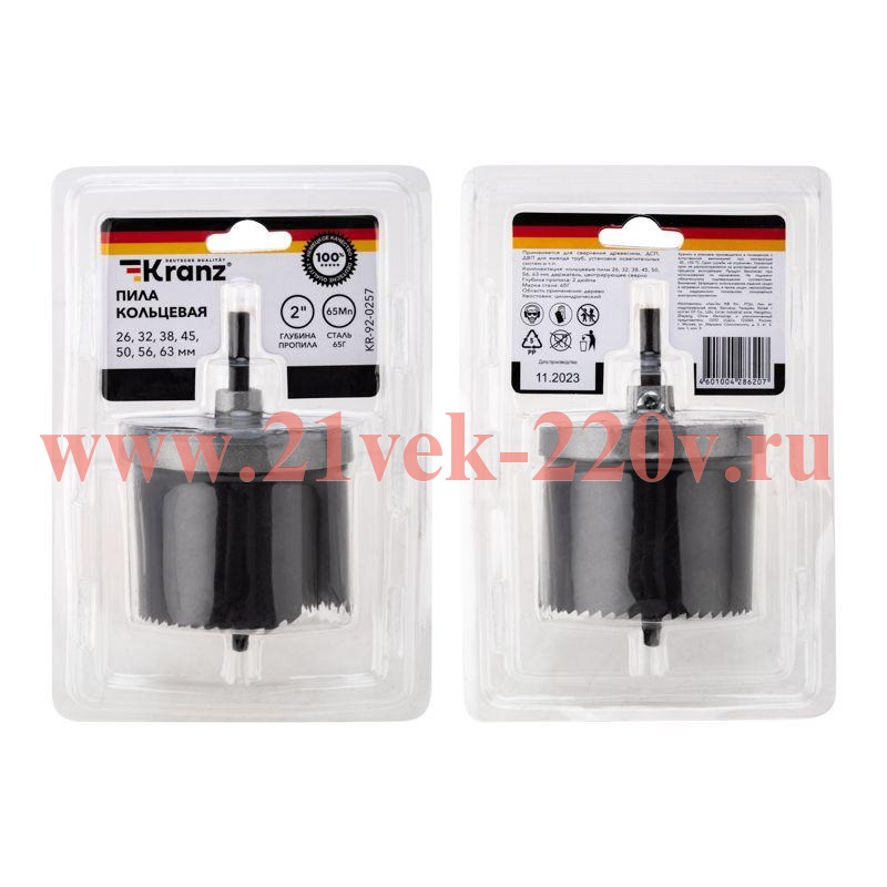 Пила кольцевая 26;32;38;45;50;56;63мм глубина пропила 2дюйм Kranz KR-92-0257