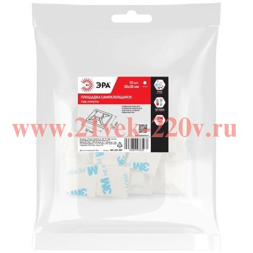 Площадка самоклеящаяся под хомуты 30х30мм бел. NO-225-309 (уп.10шт) Эра