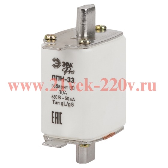 Плавкий предохранитель ЭРА PRO ppn-33-00-80 ППН-33, габарит 00, 80А