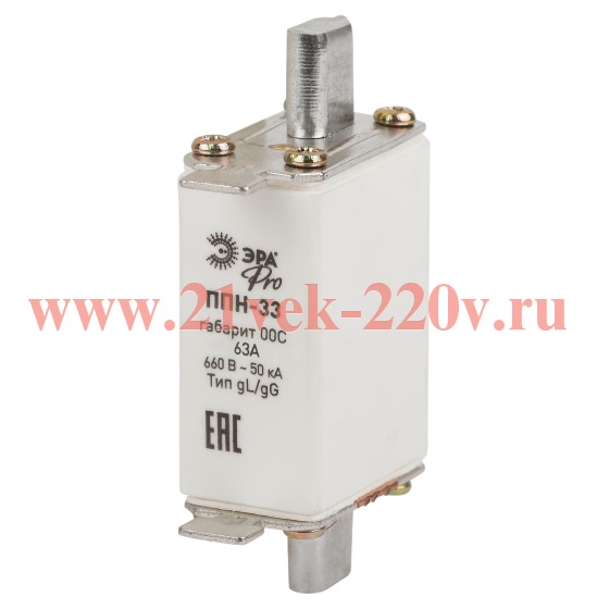 Плавкий предохранитель ЭРА PRO ppn-33-00С-63 ППН-33, габарит 00С, 63А