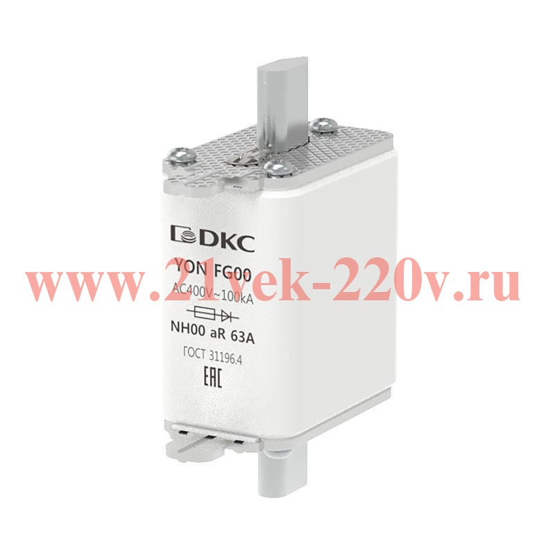 Предохранитель YON ножевого типа FG00 63А 400В хар-ка aR DKC 1FG00-0063-400V-AR