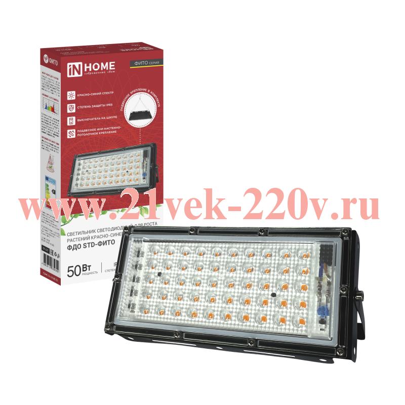 Прожектор светодиодный ФДО STD-ФИТО красн./син. спектр 50Вт IP65 черн. IN HOME