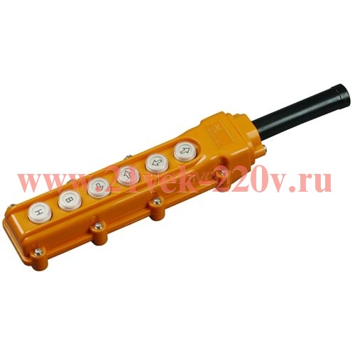 Предназначен для дистанционного управления электроприводами подъемных машин и механизмов в цепях переменного тока промышленного назначения напряжением до 400 В частотой 50 Гц. Представляет собой герметичный корпус из термостойкой ABS-пластмассы с установленными кнопками. Для герметизации ввода кабеля предусмотрен защитный сальник, а между корпусом и панелью устанавливается герметизирующая прокладка.