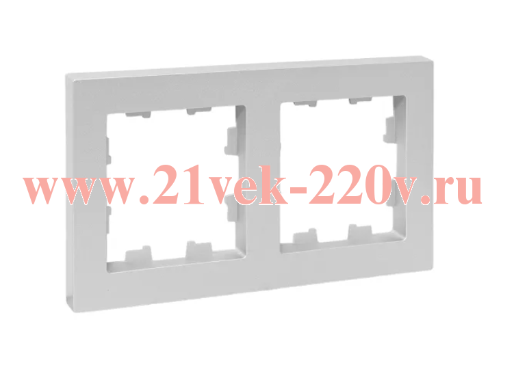 Двухпостовое декоративное обрамление EKF серии «Эпика» для электроустановочных механизмов цвета алюминий UP1-FPA-02
