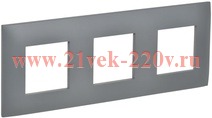 Декоративное, трехпостовое обрамление из пластика для электроустановочных механизмов, серого цвета