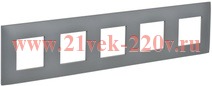 Декоративное, пятипостовое обрамление из пластика для электроустановочных механизмов, серого цвета