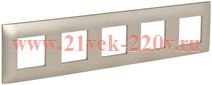 Декоративное, пятипостовое обрамление из пластика для электроустановочных механизмов, цвета шампань