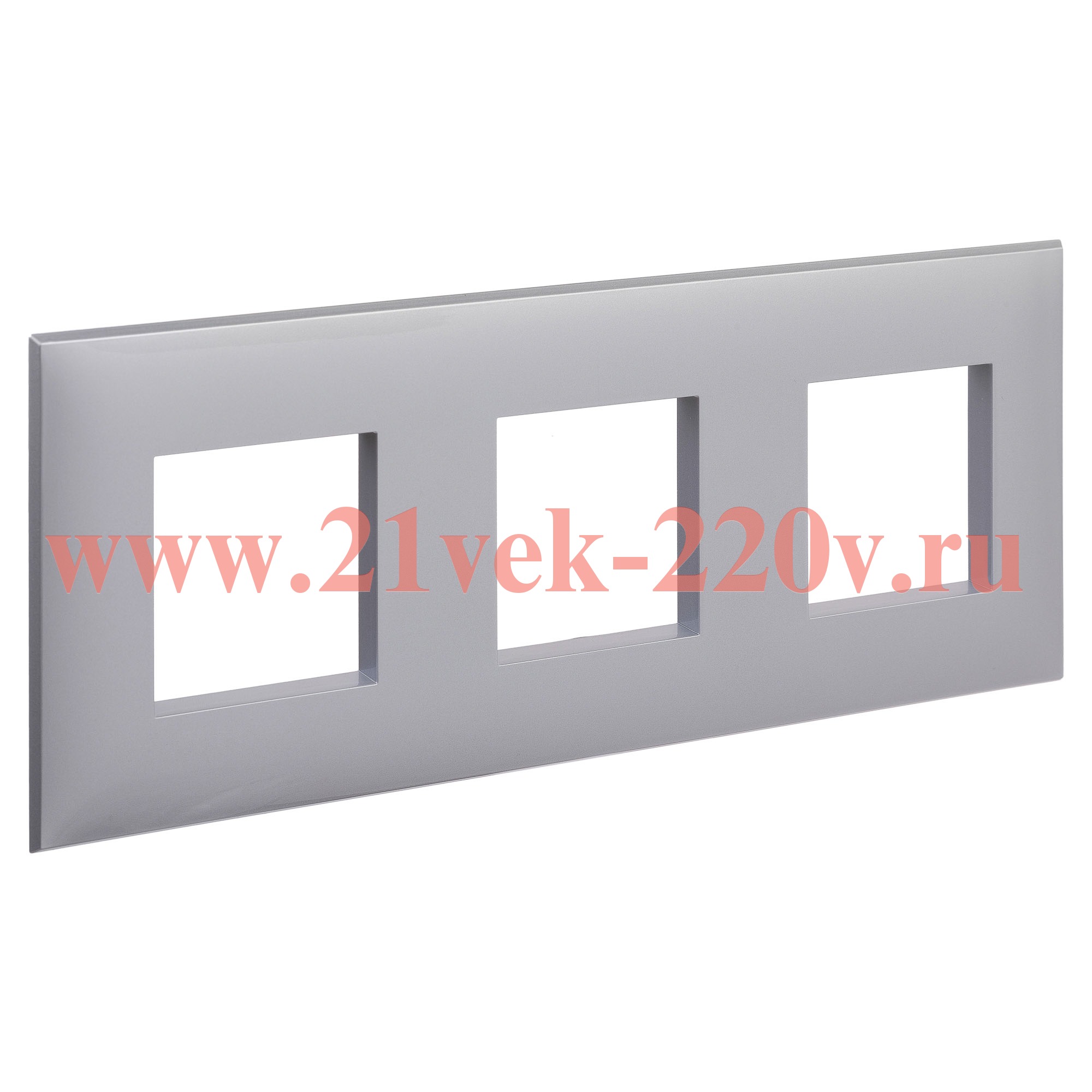 Декоративная рамка ДКС серии Avanti на 3 ЭУИ (6 модулей), цвета закаленная сталь.