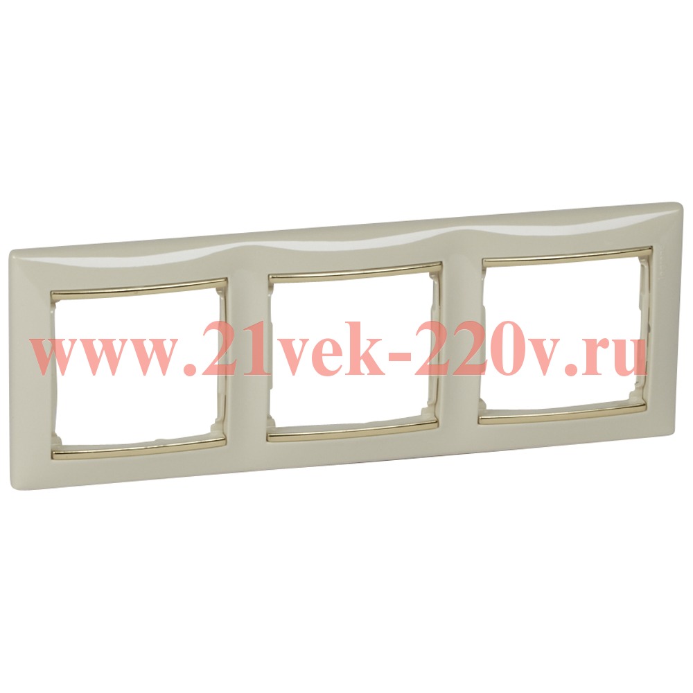 Рамка 3 поста Legrand серии Valena. Цвет - слоновая кость/золотой штрих.
