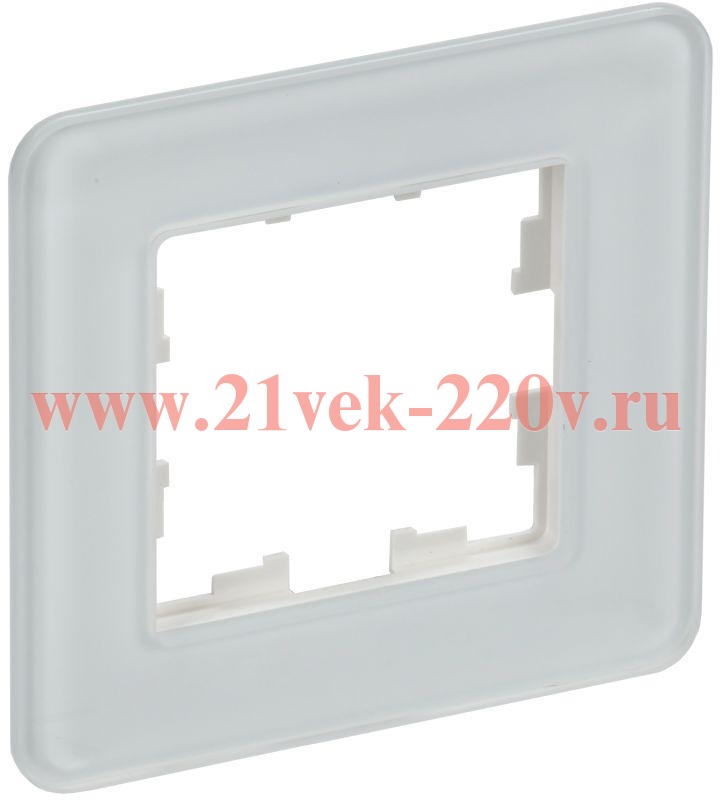Однопостовое, декоративное обрамление из стекла, для электроустановочных механизмов скрытого монтажа IEK BRITE, белого цвета BR-M12-G-41-K01