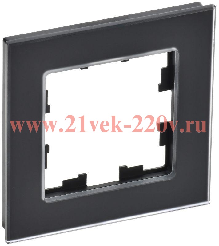 Однопостовое, декоративное обрамление из стекла, для электроустановочных механизмов скрытого монтажа IEK BRITE, черного матового цвета BR-M12-G-31-K02