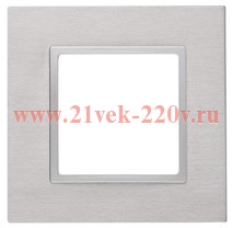 Декоративная металлическая однопостовая рамка для механизмов Эра Elegance, цвет Алюминий со вставкой алюминий.