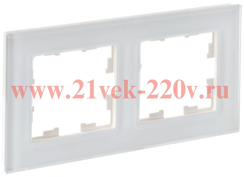 Двухпостовое, декоративное обрамление из стекла, для электроустановочных механизмов скрытого монтажа IEK BRITE, белого матового цвета BR-M22-G-31-K01