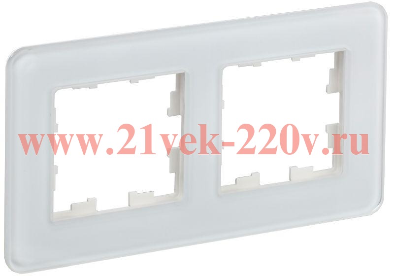 Двухпостовое, декоративное обрамление из стекла, для электроустановочных механизмов скрытого монтажа IEK BRITE, белого цвета BR-M22-G-41-K01