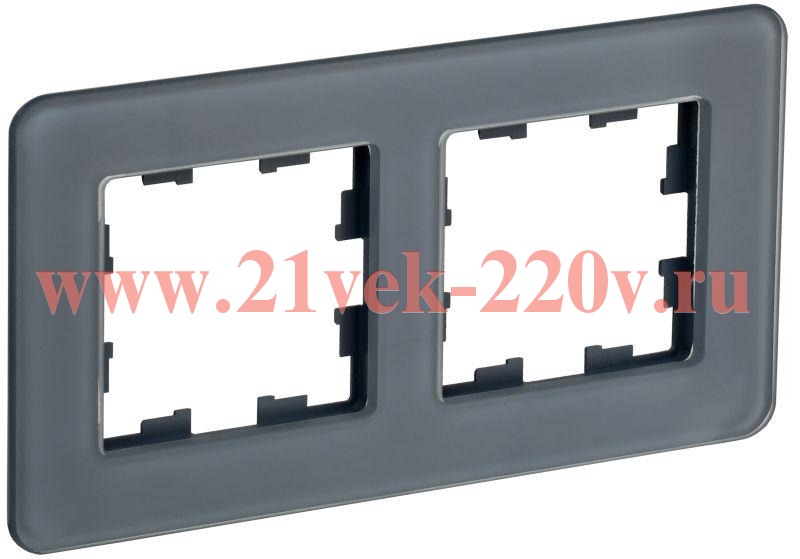 Двухпостовое, декоративное обрамление из стекла, для электроустановочных механизмов скрытого монтажа IEK BRITE, серого цвета BR-M22-G-41-K53