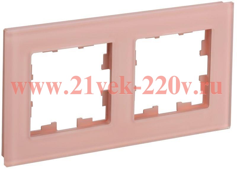 Двухпостовое, декоративное обрамление из стекла, для электроустановочных механизмов скрытого монтажа IEK BRITE, персиковый матовый цвет BR-M22-G-31-K96