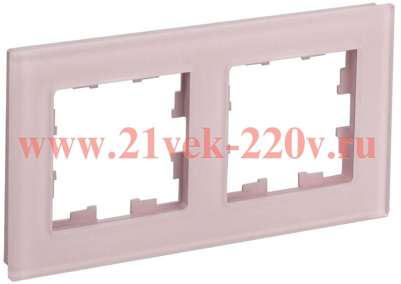 Двухпостовое, декоративное обрамление из стекла, для электроустановочных механизмов скрытого монтажа IEK BRITE, розового матового цвета BR-M22-G-31-K14
