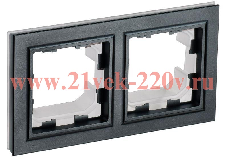 Пластиковое декоративное обрамление с силиконовой манжетой для повышения защиты от влаги и пыли, для двух электроустановочных механизмов скрытого монтажа IEK BRITE, черного цвета BR-M22-44-K02